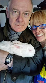 TOYAH: I have a very beautiful white rabbit (below with husband Robert Fripp and Toyah) that's nine years old who lives with us in the house -